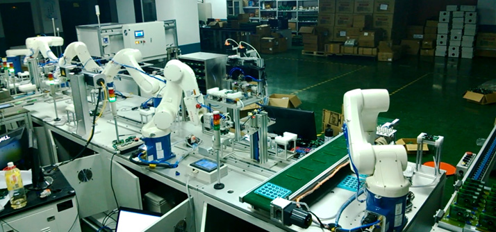 自動檢測,組裝,自動產線,六軸配合四軸機械手,實現自動生產。