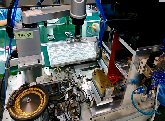 四軸機器人配合熱熔埋螺母,效率提升四倍有效節省人力提高品質穩定性。