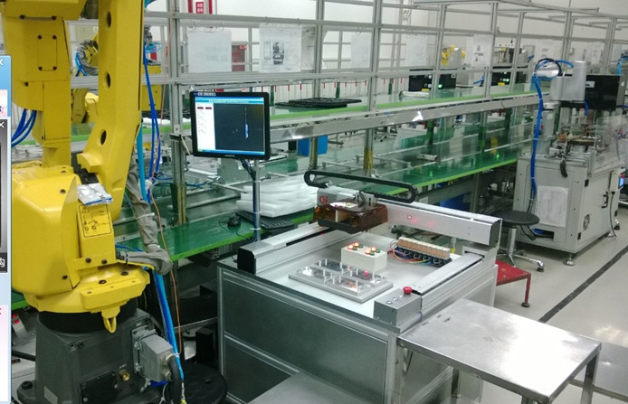 項目為一個電子產品的整機組裝,利用六軸機械手搭配周邊輔助設備,模塊式作業,實現全自動生產。其中包含電池的組裝,PCB電路板軟體的燒制及檢測,激光打碼,螺絲的組裝,CCD檢測,通電檢測,全自動裝箱,全自動上料。