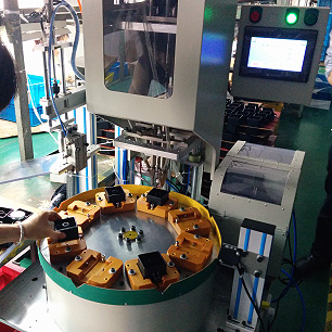 - 1. 通過分度轉盤實現夾具循環圓周步進流水作業,放入產品、機器組裝、檢測、送螺釘、 擰螺釘、自動卸料等工作同步進行,機器效能大大提高。